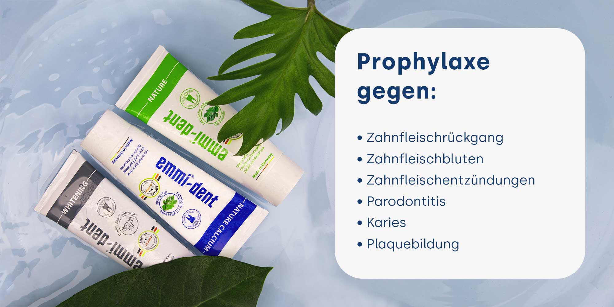 Die regelmäßige Anwendung unserer Zahnpasta hilft, den natürlichen Weißgrad der Zähne zu erhalten und Verfärbungen vorzubeugen, die durch alltägliche Einflüsse wie Kaffee, Tee oder Tabak verursacht werden können. Darüber hinaus sorgt die Zahnpasta von emmi-dent für einen frischen Atem und ein sauberes Mundgefühl.
