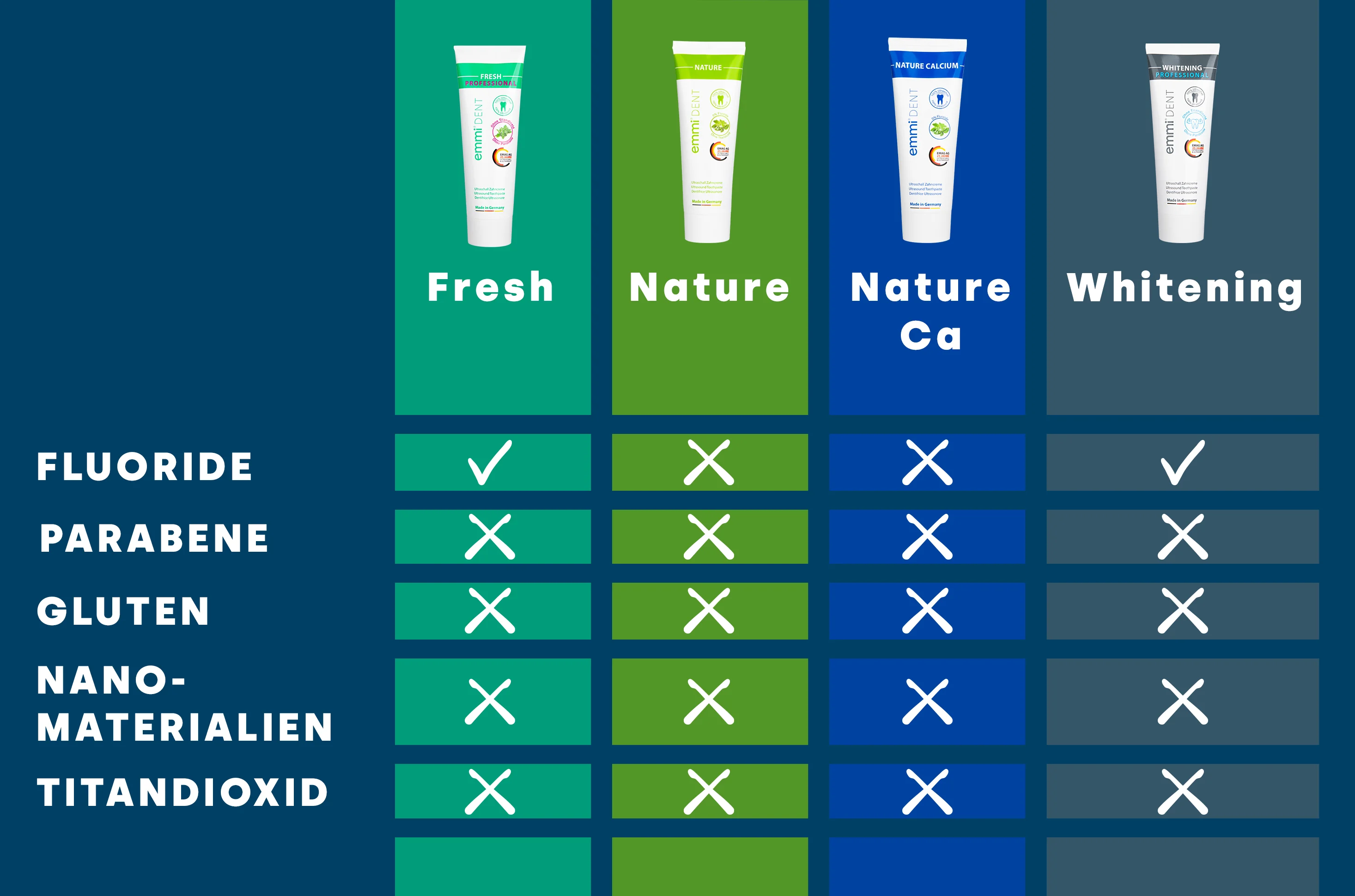 Neben unserer bewährten Nature Zahncreme bietet emmi-dent eine zusätzliche, innovative Option an: Unsere Nature Zahncreme, jetzt auch angereichert mit Calcium und ganz ohne Fluorid. Die Entscheidung, Calcium in unsere Zahncreme zu integrieren, basiert auf zahlreichen wissenschaftlichen Erkenntnissen, die die Bedeutung dieses Minerals für die Zahngesundheit hervorheben. Calcium ist ein wesentlicher Bestandteil in der Struktur unserer Zähne und spielt eine entscheidende Rolle bei der Remineralisierung des Zahnschmelzes. Diese Remineralisierung ist wichtig, da sie dazu beiträgt, die Zähne widerstandsfähiger gegenüber den schädlichen Auswirkungen von Säureangriffen und der Entstehung von Karies zu machen.