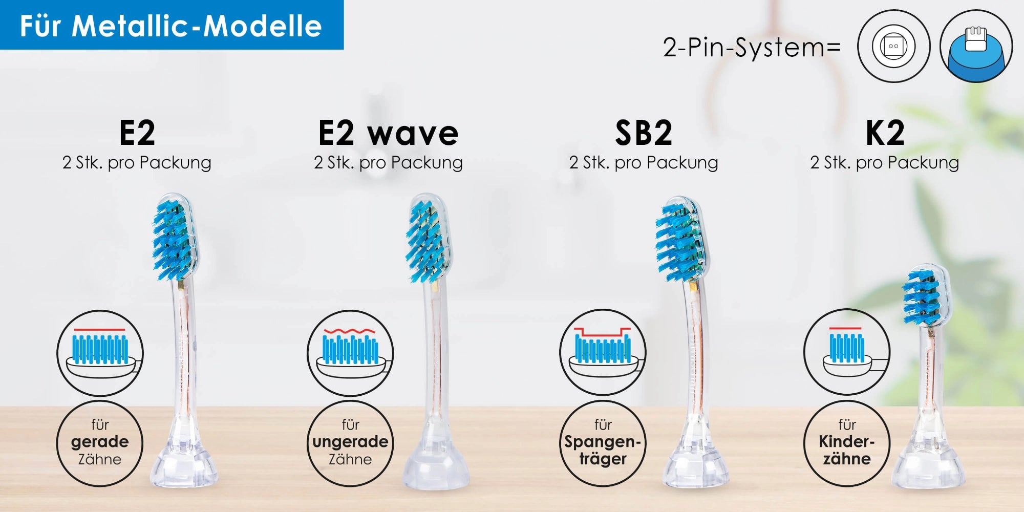 Ersatzbürstenköpfe Ultraschallzahnbürste - Aufsätze für Metallic