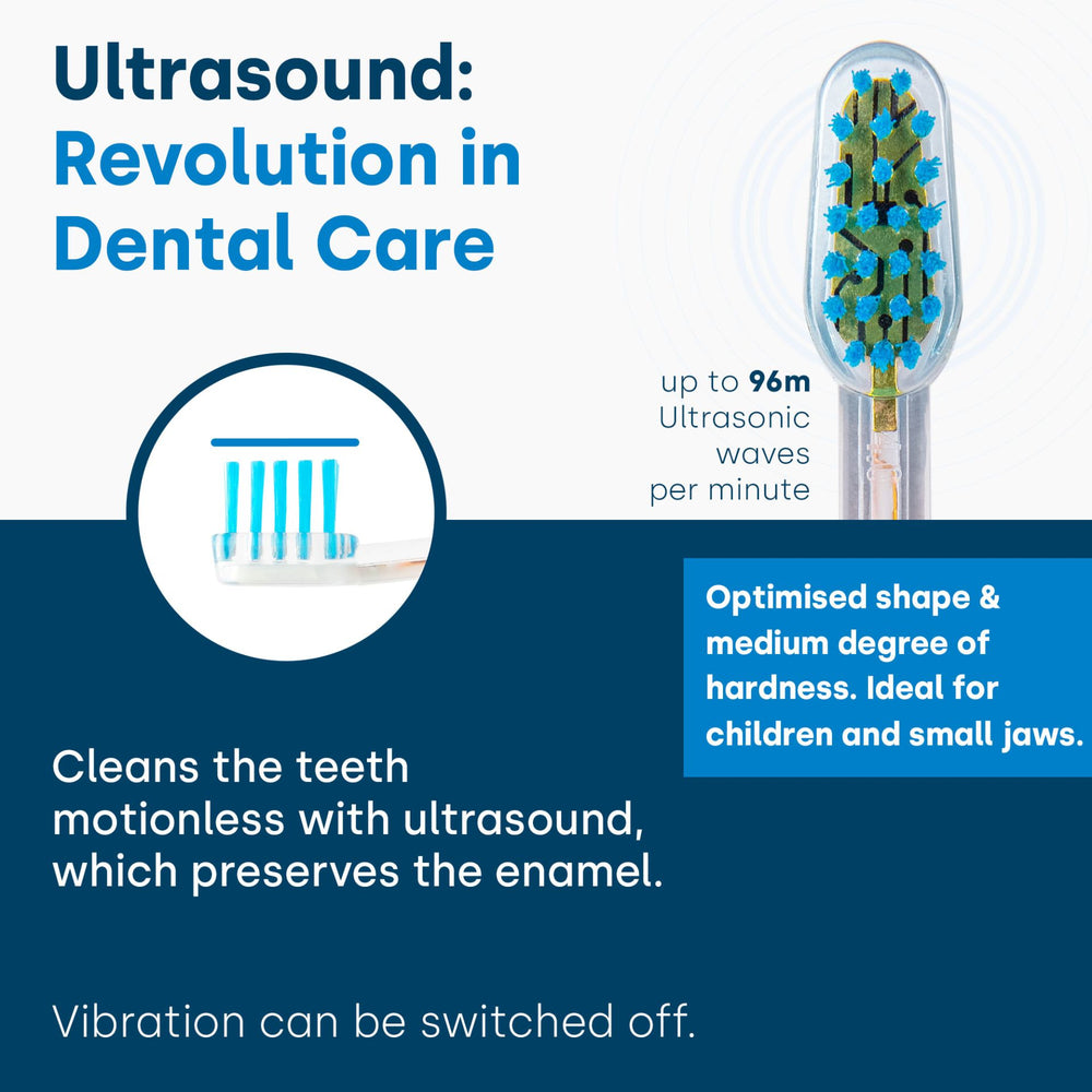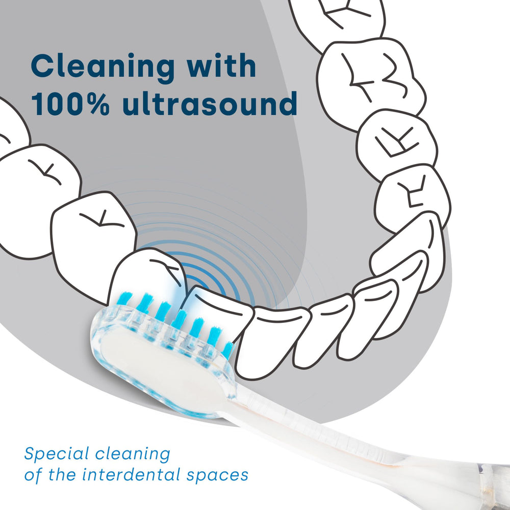 This ultrasonic brush head should be replaced after 3 months of use at the latest. After this period, the ability of the bristles to transmit 100% of the ultrasound weakens and optimal tooth cleaning and oral hygiene is no longer guaranteed.