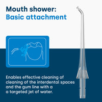 The emmi-dent oral irrigator is an indispensable tool for comprehensive oral hygiene, in addition to daily dental care with a toothbrush. Designed to thoroughly and gently clean the spaces between teeth, which are often neglected during conventional brushing, it exceeds the effectiveness of dental floss, especially for closely spaced teeth or hard-to-reach areas. Equipped with four cleaning modes - impulse, gentle, normal, and strong - and four nozzle attachments, the oral irrigator adapts to individual needs, although regular replacement of the nozzles every three months is recommended. The versatility of the emmi-dent oral irrigator is evident in its ability to not only thoroughly clean food residue and plaque from between teeth, but also to meet special needs such as cleaning around braces and implants. It is an asset for people with sensitive gums by providing a gentle but thorough cleaning and thus preventing gum problems. In addition, it supports gum health by massaging, which promotes blood circulation, and contributes to fresh breath by effectively removing bacteria on the tongue. With the ability to clean periodontal pockets and effectively tackle plaque, the emmi-dent oral irrigator minimizes the risk of gum disease and tooth decay, making it a useful addition to the ultrasonic toothbrush to ensure optimal oral hygiene.