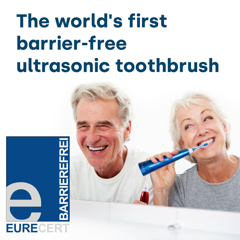 Toothbrushes that work with ultrasound have been revolutionizing tooth brushing since 2013. The decisive advantage over traditional manual toothbrushes or electric toothbrushes is that ultrasonic toothbrushes work almost contact-free and without mechanical movements. This makes cleaning particularly gentle and yet reliably thorough.