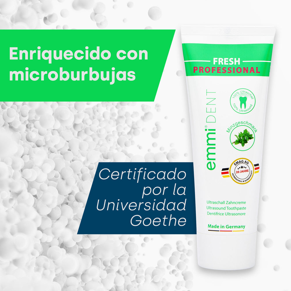 emmi-dent es pionero en el cuidado dental por ultrasonidos y es sinónimo de calidad excepcional y tecnología innovadora. Nuestra pasta de dientes ultrasónica fresca ha sido desarrollada por expertos y probada clínicamente para brindarle una experiencia de limpieza incomparable. ¡Confíe en emmi-dent y experimente la diferencia!