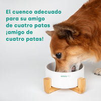 Con el diseño minimalista del cuenco de cerámica de emmi-pet, ofrecemos no solo una alimentación elegante sino también cómoda para mascotas y dueños. El agradable peso del cuenco y el marco de madera a juego proporcionan estabilidad y garantizan el disfrute de la ración diaria de comida. La superficie lisa del cuenco para perros facilita el cuidado y la higiene diarios. Se puede lavar a mano o limpiar en el lavavajillas. Gracias a la base antideslizante, el cuenco de cerámica con marco de madera se mantiene estable en el suelo y evita que se vuelque. Esto minimiza los derrames y garantiza un ambiente limpio. El marco de madera está recubierto con barniz para protegerlo del agua. El comedero para perros pequeños y grandes atrae todas las miradas para cualquier dueño de mascota gracias a su aspecto moderno.