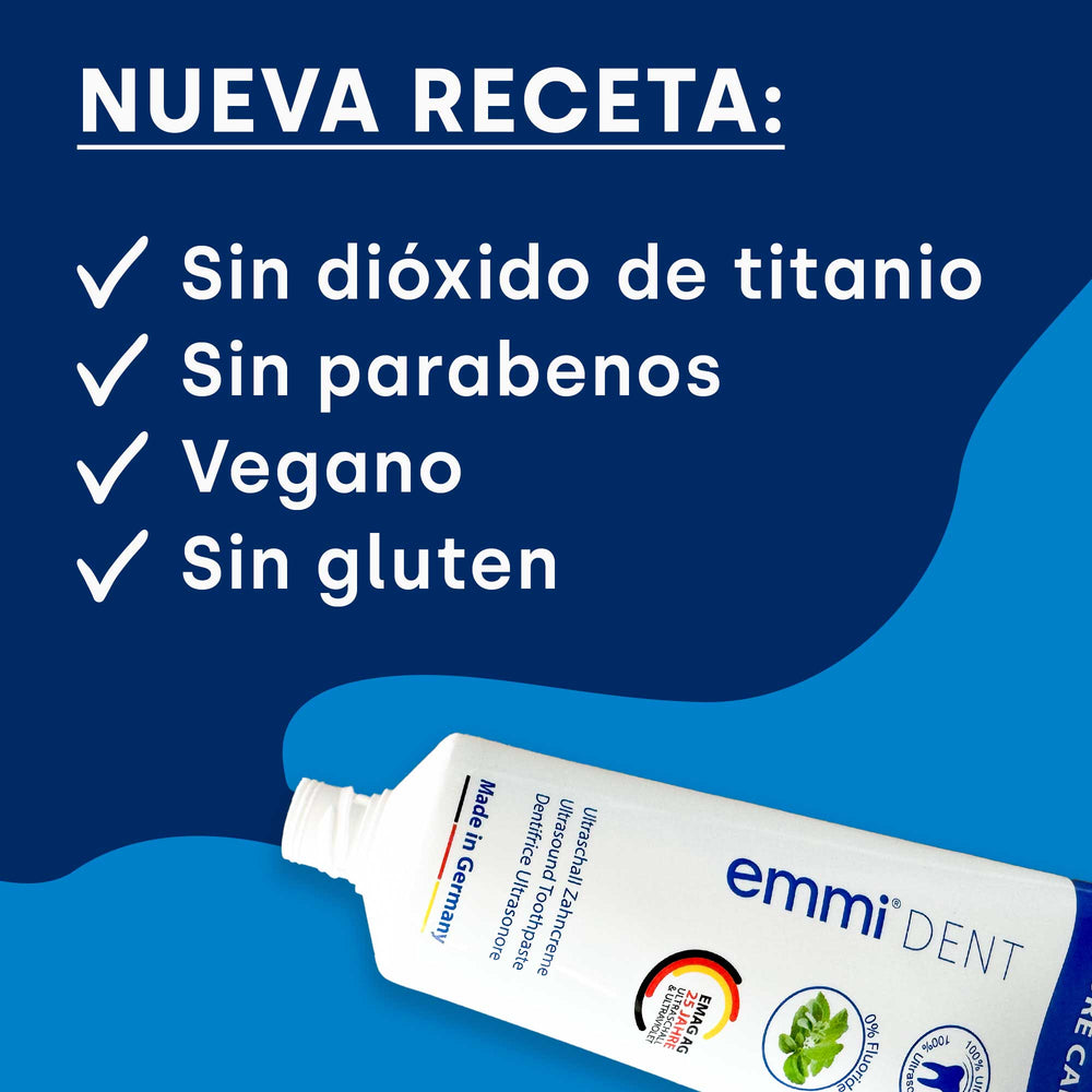 No pierdas la oportunidad de probar la pasta de dientes ultrasónica con calcio Nature emmi-dent y fortalecer tus dientes de forma natural. Haga su pedido hoy y disfrute de los beneficios de un cuidado dental de alta calidad sin flúor, pero con el poder del calcio.