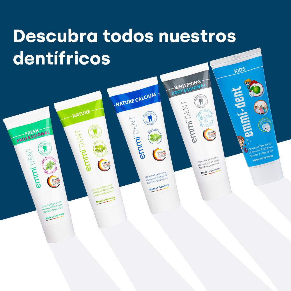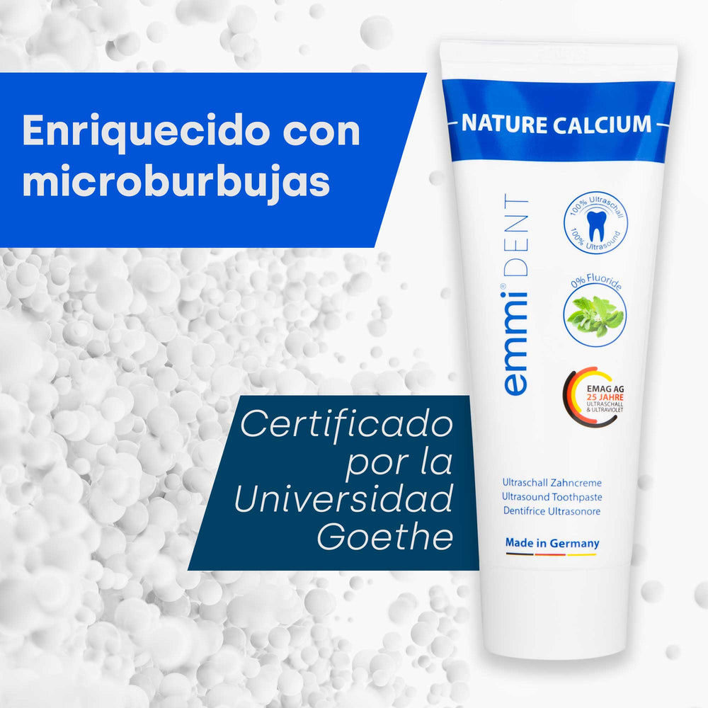 La pasta de dientes ultrasónica con calcio Nature emmi-dent le ofrece un cuidado natural y eficaz que limpia y fortalece suavemente sus dientes. Gracias al calcio que contiene tus dientes se fortalecen y son más resistentes a las caries. Disfrute de los beneficios de la pasta dental sin flúor para una sonrisa sana y fuerte.