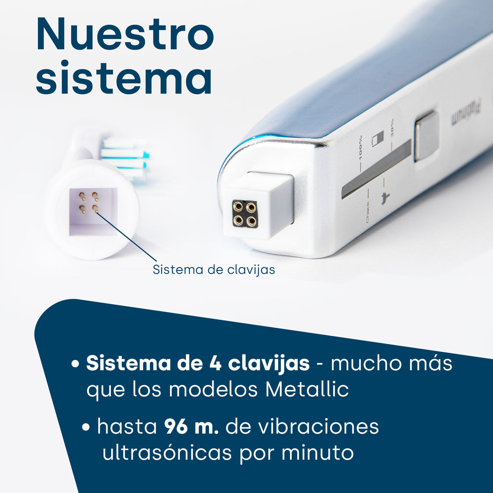 - Limpieza profunda: la tecnología ultrasónica elimina la placa y las bacterias sin necesidad de cepillado mecánico.