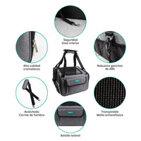 - Adecuado para viajar: gracias a sus dimensiones (41,5 x 32 x 30), la caja de transporte también es adecuada para viajar en avión. Esto puede variar dependiendo de la aerolínea.