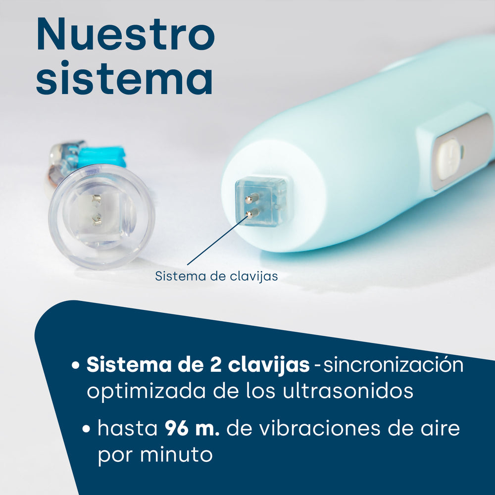 Los ultrasonidos reducen las bacterias, incluso en las bolsas de las encías, reducen el mal aliento y llegan también a lugares de difícil acceso: espacios interdentales, reducción de bacterias, para usuarios de brackets, implantes, etc...