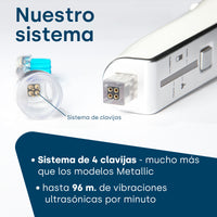 El cuidado dental se limita a las áreas de la boca que el cepillo de dientes rotatorio o sónico puede alcanzar. A diferencia de los cepillos de dientes eléctricos convencionales, el cepillo de dientes ultrasónico funciona completamente sin presión transmitiendo vibraciones. Esto significa que toda la cavidad bucal queda limpia a fondo.