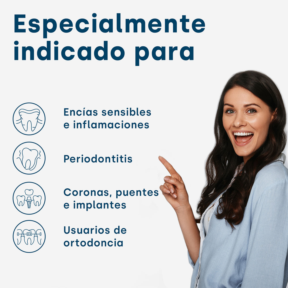 - "Evita lesiones en las encías gracias al uso sin abrasión."