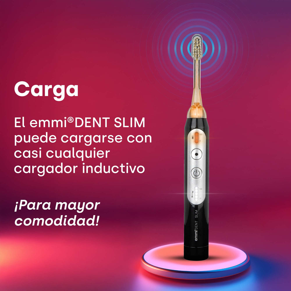 El emmi-dent Slim Establece nuevos estándares en el cuidado dental. Con su avanzada tecnología de ultrasonidos y su diseño delgado, garantiza una limpieza especialmente profunda y suave de dientes y encías, sin ningún movimiento mecánico.
