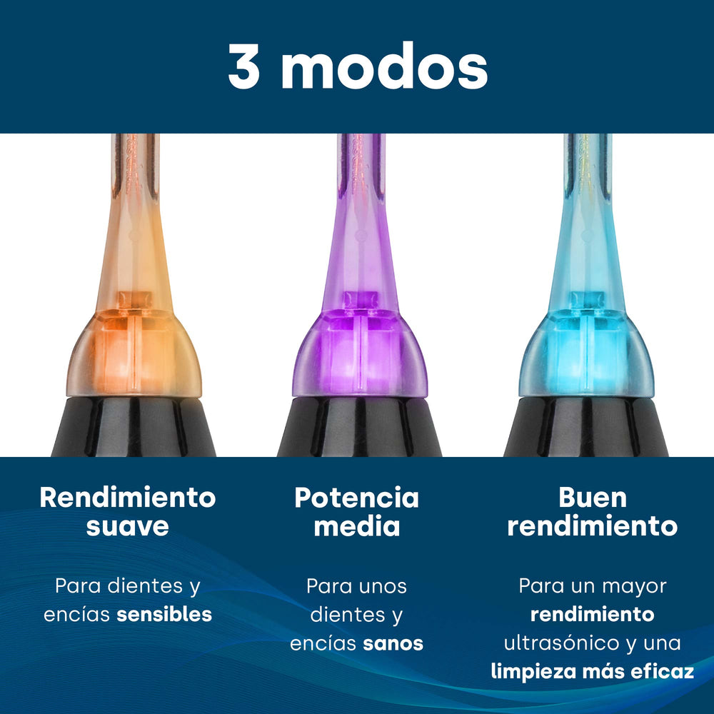 Los cepillos de dientes eléctricos incluyen cepillos de dientes rotatorios, cepillos de dientes sónicos y cepillos de dientes ultrasónicos. Mientras que los primeros suelen tener cepillos redondos que giran alternativamente de izquierda a derecha, los cepillos de dientes sónicos están equipados con cabezales alargados y vibratorios. Con 20.000 a 40.000 vibraciones por minuto consiguen movimientos mecánicos significativamente superiores a los de los cepillos rotativos. Los cepillos de dientes ultrasónicos superan este rendimiento muchas veces y son