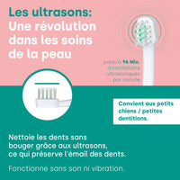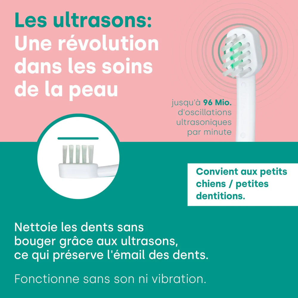 La tête de brosse à ultrasons emmi-pet utilise les avantages de la technologie ultrasonique brevetée pour atteindre même les zones difficiles à atteindre que les poils conventionnels ont du mal à nettoyer. Grâce à cette technologie révolutionnaire, la plaque dentaire et les impuretés sont éliminées en douceur et efficacement pour favoriser la santé dentaire de votre animal et prévenir d'éventuelles maladies.