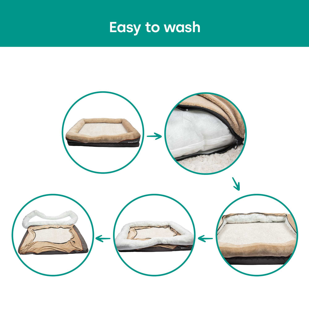 La housse du lit pour chien emmi-pet est non seulement respirante et douce, mais également amovible et lavable en machine. De cette façon, vous pouvez garantir que le lit reste toujours hygiéniquement propre – idéal pour les chiens souffrant d’allergies ou de peau sensible. La base en caoutchouc antidérapante garantit que le lit ne glisse pas même pendant les jeux orageux et reste stable en place.