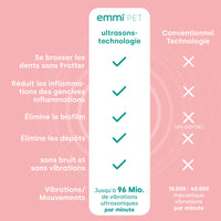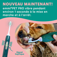 Découvrez la nouvelle génération de brosse à dents à ultrasons avec la nouvelle emmi-pet PRO – désormais dotée de fonctionnalités innovantes qui rendent les soins dentaires de votre animal encore plus faciles et plus efficaces. La technologie optimisée garantit des performances de nettoyage maximales tandis que votre ami à quatre pattes continue de profiter d'une expérience douce et sans stress.