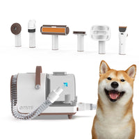 Divers accessoires : En plus de l'aspirateur, l'ensemble comprend également 5 brosses/peignes et une tondeuse avec 5 accessoires différents.
