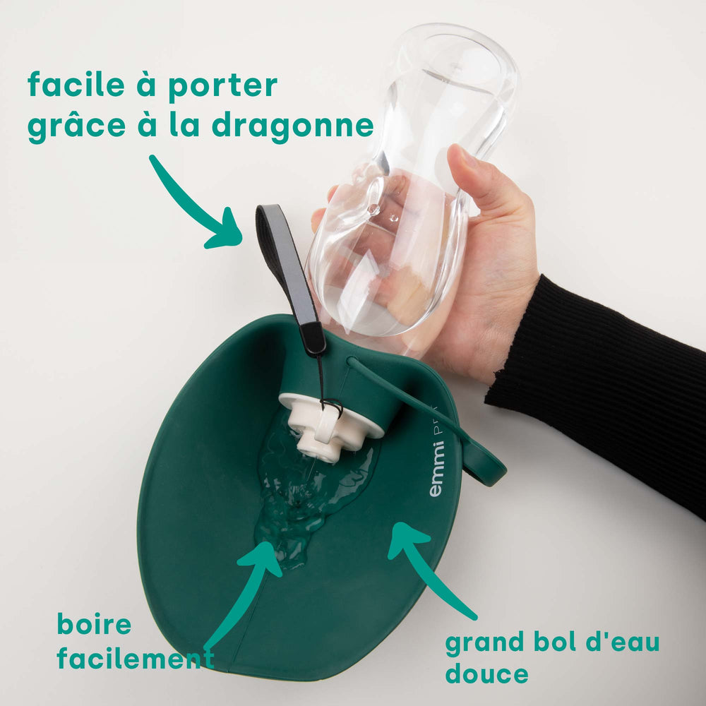 Lorsqu’ils font de l’exercice ou par temps chaud, les chiens ont besoin de beaucoup d’eau. En voyage ou en promenade, il n'est parfois pas facile de fournir de l'eau fraîche à votre compagnon à quatre pattes. En chemin, il n’est pas surprenant que l’animal ait soif et boive dans des flaques d’eau ou des étangs. Mais l’eau peut contenir des germes et entraîner des problèmes digestifs. C'est pourquoi la gourde pour chien emmi-pet est la solution idéale pour les déplacements. Avec la bouteille d'eau de voyage, vous avez toujours beaucoup d'eau à portée de main.