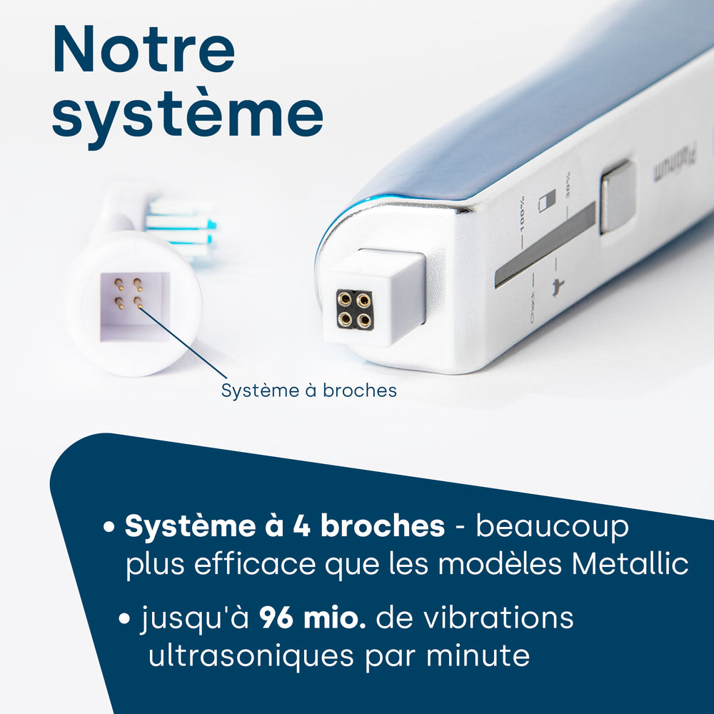 Remplacez régulièrement les têtes de brosse pour garantir des performances de nettoyage optimales de votre emmi-dent Platinum. Cela vous garantira des soins dentaires hygiéniques et efficaces.