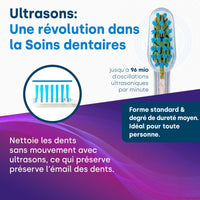- Réduction de la mauvaise haleine grâce à l'élimination profonde de la plaque dentaire