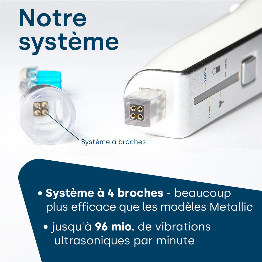 Les brosses à dents fonctionnant aux ultrasons révolutionnent le brossage des dents depuis 2013. L'avantage décisif par rapport aux brosses à dents manuelles classiques ou aux brosses à dents électriques est que les brosses à dents à ultrasons fonctionnent presque sans contact et sans mouvements mécaniques. Cela rend le nettoyage particulièrement doux et pourtant fiable et approfondi.