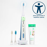 Les brosses à dents fonctionnant aux ultrasons révolutionnent le brossage des dents depuis 2013. L'avantage décisif par rapport aux brosses à dents manuelles classiques ou aux brosses à dents électriques est que les brosses à dents à ultrasons fonctionnent presque sans contact et sans mouvements mécaniques. Cela rend le nettoyage particulièrement doux et pourtant fiable et approfondi.