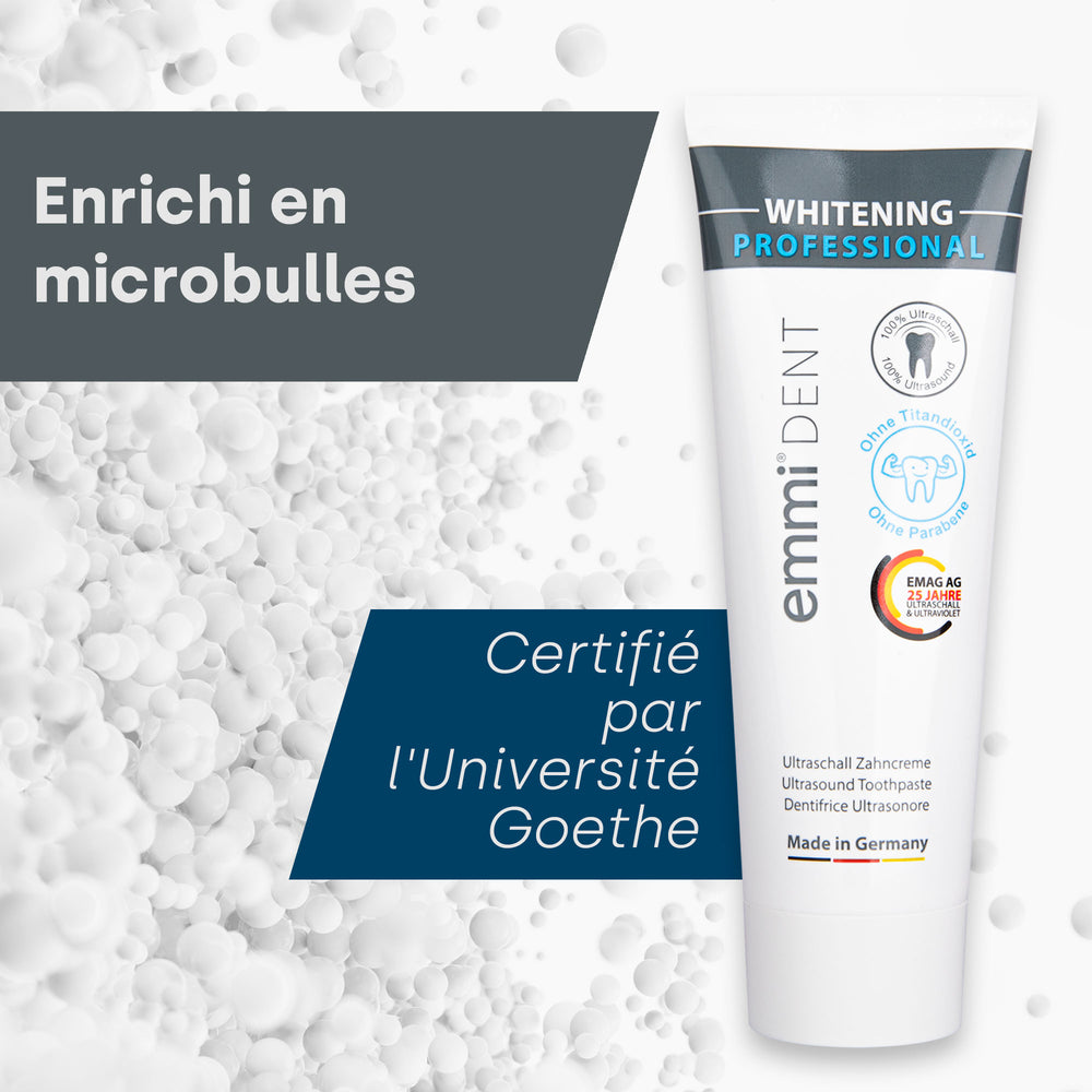 N'attendez plus et donnez vie à votre sourire radieux ! Commandez maintenant le dentifrice blanchissant à ultrasons emmi-dent et découvrez une nouvelle dimension dans les soins dentaires.