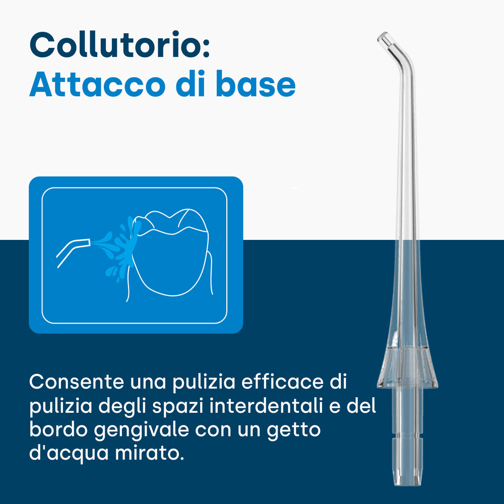 Adatto per la pulizia delle tasche parodontali, iniettato in aree specifiche sotto lo spazio gengivale. La colonna d'acqua pulsata penetra in profondità nella tasca parodontale/area sottogengivale. L'ugello morbido e sottile può rimuovere i batteri nocivi nella tasca parodontale/6-7 mm sotto la gengiva. Il flusso d'acqua pulsante massaggia piacevolmente le gengive.