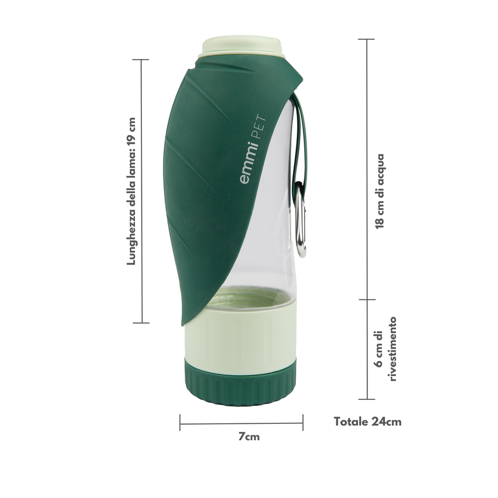 La borraccia emmi-pet per cani è l'accessorio perfetto per chi viaggia molto con il proprio amico peloso. Questa pratica borraccia da viaggio per cani assicura che il tuo cane abbia sempre abbastanza liquidi, ovunque tu sia, con l'ulteriore vantaggio di poter gustare anche degli spuntini deliziosi.