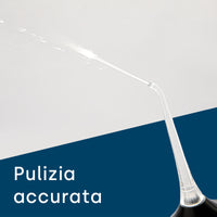 Abbiamo l'ugello più adatto per ogni applicazione! Grazie ai quattro ugelli di attacco inclusi, avrai l'ugello giusto per ogni attività di pulizia. Che si tratti di apparecchi ortodontici, ponti o impianti, l'irrigatore orale è ideale per rimuovere i depositi negli spazi tra i denti o in altre zone difficili da raggiungere.