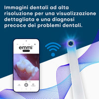 Vivi l'esperienza di cure dentistiche al massimo livello: emmi-dent PlatinumCAM combina la più recente tecnologia a ultrasuoni con una telecamera dentale integrata per rendere visibili anche le aree difficili da raggiungere della bocca, per una pulizia e un controllo ancora più approfonditi, comodamente tramite il tuo smartphone.