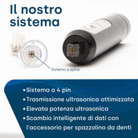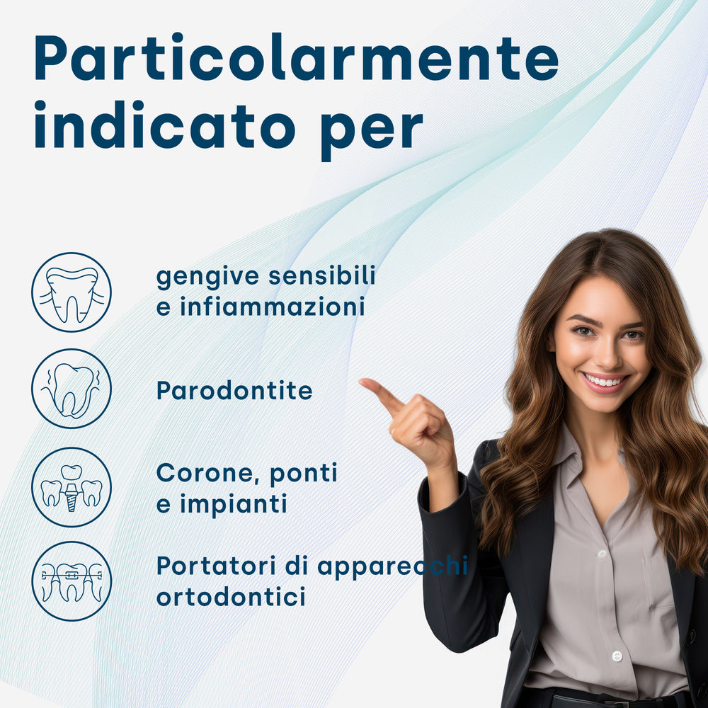 Abbiamo sviluppato una testina speciale per le persone che portano l'apparecchio ortodontico. Le vibrazioni ultrasoniche puliscono a fondo anche le zone inaccessibili tra denti e apparecchi ortodontici. Anche le persone con impianti dentali traggono vantaggio dalle massime prestazioni di pulizia dell'innovativa tecnologia a ultrasuoni.