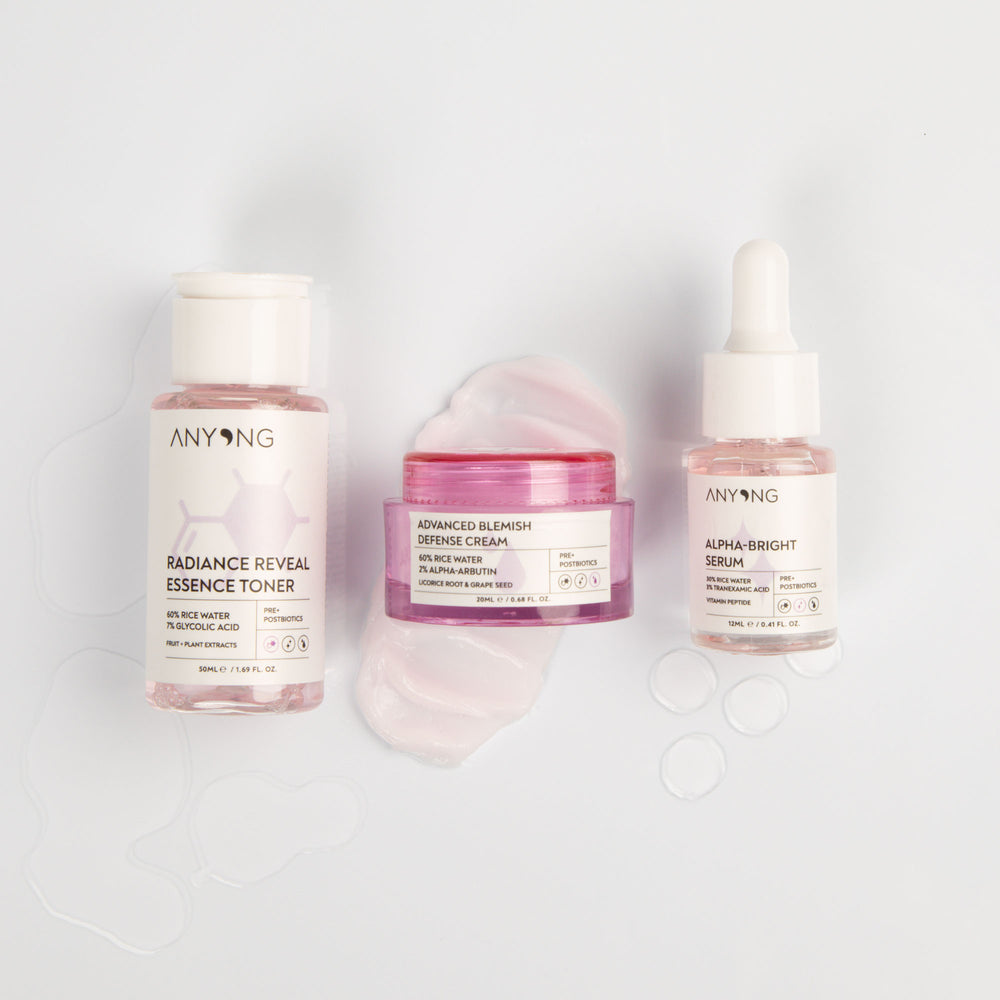 Das perfekte Kit für eine ebenmäßige Haut. Der sanfte Toner auf Reiswasser Basis klärt und verengt deine Poren und sorgt damit für ein ideales Vorspiel. Der Höhepunkt zur ebenmäßigen Haut ist das glättende und Poren verfeinernde Serum. Der kuschelige Abschluss bildet die reichhaltige Advanced Blemish Defense Creme, ein unverzichtbarer Begleiter.
