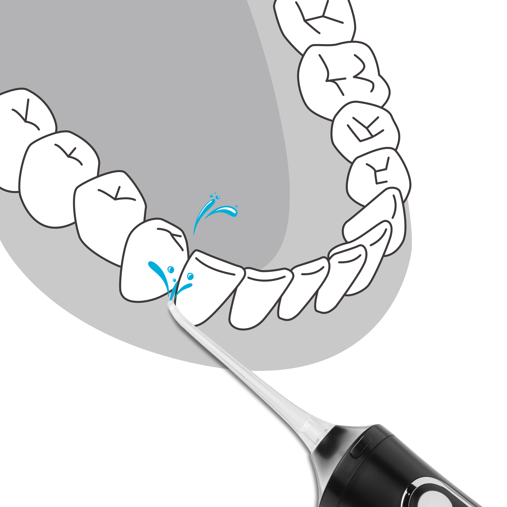 Eine sorgfältige Zahnreinigung mit einer Ultraschallzahnbürste liefert bereits ausgezeichnete Ergebnisse sowohl am Morgen als auch am Abend. Dabei werden jedoch häufig Zahnzwischenräume vernachlässigt, in denen sich Speisereste und Bakterien ansammeln können, die die Bildung von Plaque und Karies fördern. Als Ergänzung zur täglichen Zahnpflege empfiehlt sich daher der Einsatz einer Munddusche.